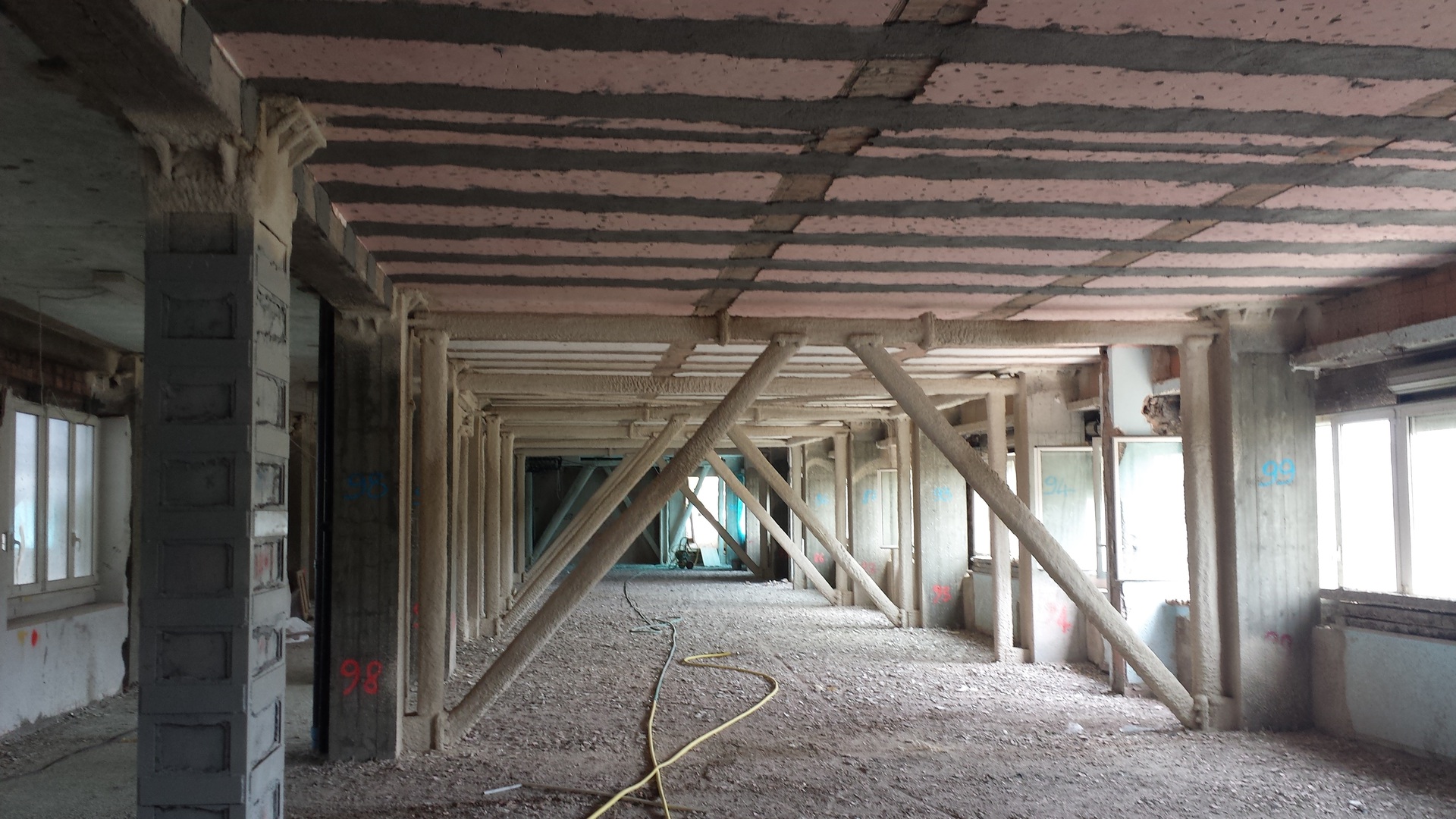 al fuoco sia su strutture in ferro che su CLS, mediante l’applicazione di intonaco a base Perlite espansa, o a base gesso , delle primarie società come: BPB Italia, Promat, Amonn Fire, o